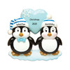 Personalized Christmas Penguin Couple Blue Heart Ornament