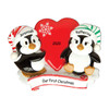 Personalized Christmas Penguin Couple Red Heart Ornament