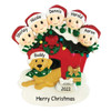 Personalized Family of 5 and Brown Dog in Dog House Ornament