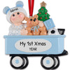 Personalized Toddler in Blue Wagon Christmas Ornament